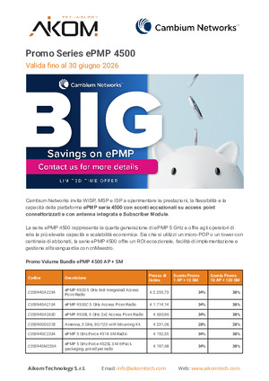 Aikom Technology distribuisce ai system integrator di tutta Italia un’ampia selezione di brand, prodotti e tecnologie per la progettazione e la realizzazione di reti wireless e wired a prova di imprevisto. Ricerchiamo, sperimentiamo e proponiamo ai nostri partner di canale prodotti e soluzioni complete per la distribuzione dati in ambito enterprise o in mobilità, per il settore pubblico e privato.