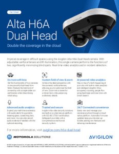 Progettata per essere montata in superficie o a soffitto, la telecamera H6A Dual Head di Avigilon si adatta con versatilità a ogni scenario, con una struttura robusta ma discreta e un peso contenuto. Un solo cavo di rete e una sola licenza software permettono di semplificare drasticamente l’integrazione con i sistemi di sorveglianza esistenti.